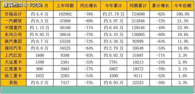 那么在整个重卡销量大幅下滑的背后,各家车企的表现又如何呢?